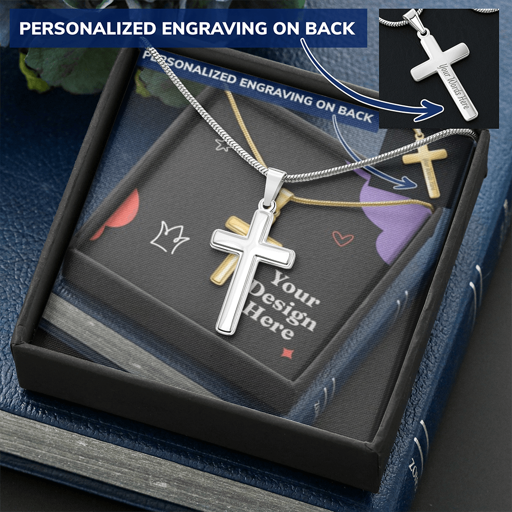 Wear your faith proudly with this Personalized Cross Necklace. Perfect for special occasions or everyday wear, our Personalized Cross Necklace is a wonderful gift idea for you or your loved one.